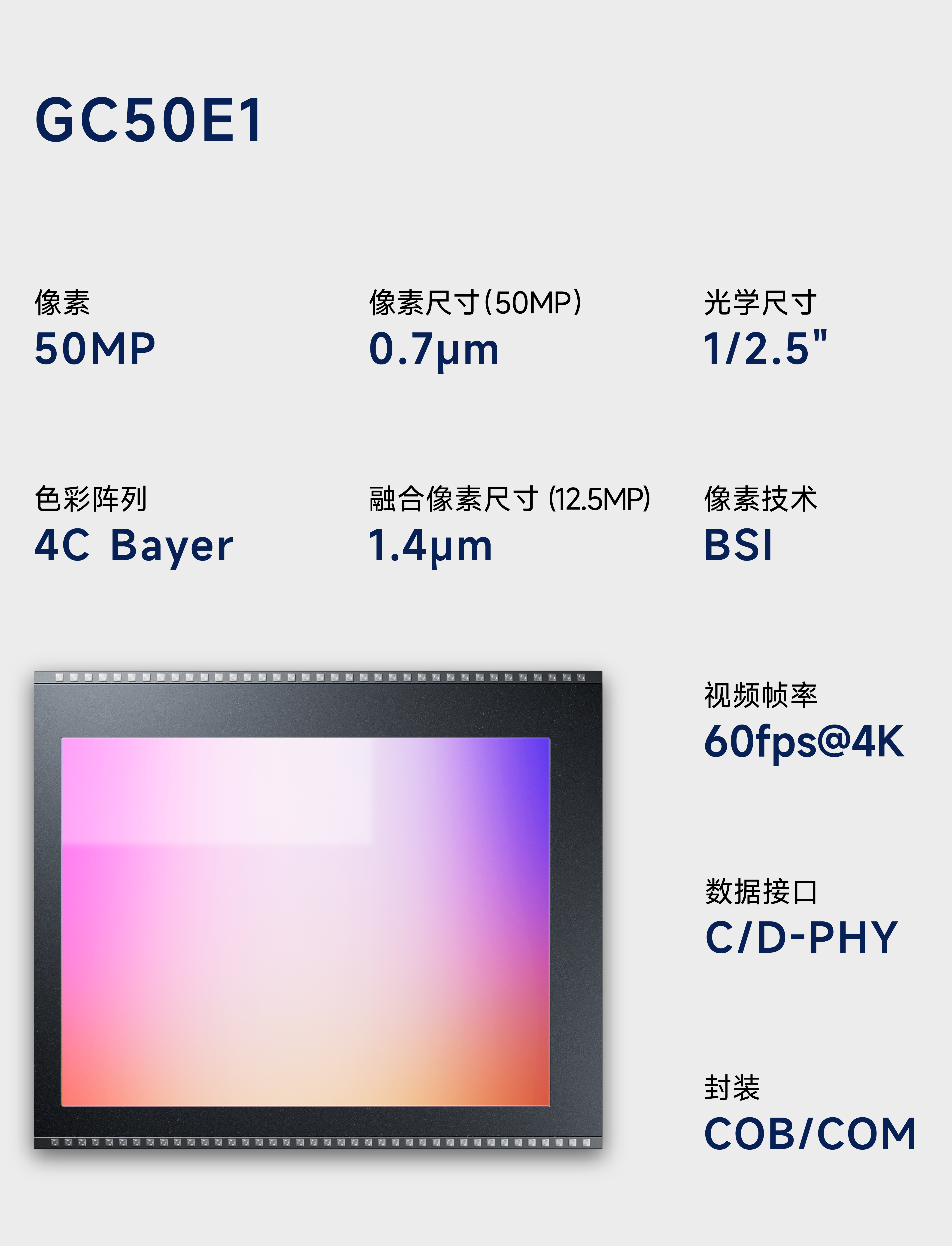 GC50E1:第二代50M 0.7μm图像传感器,提升成像细节和动态范围